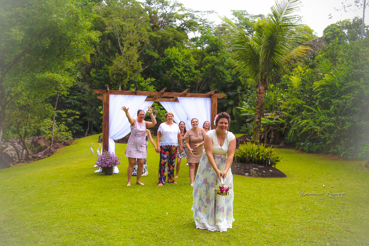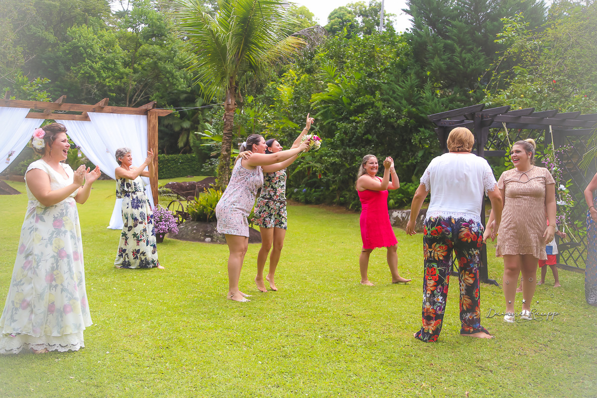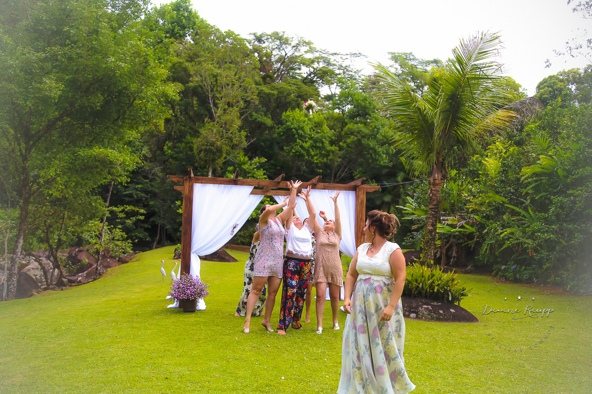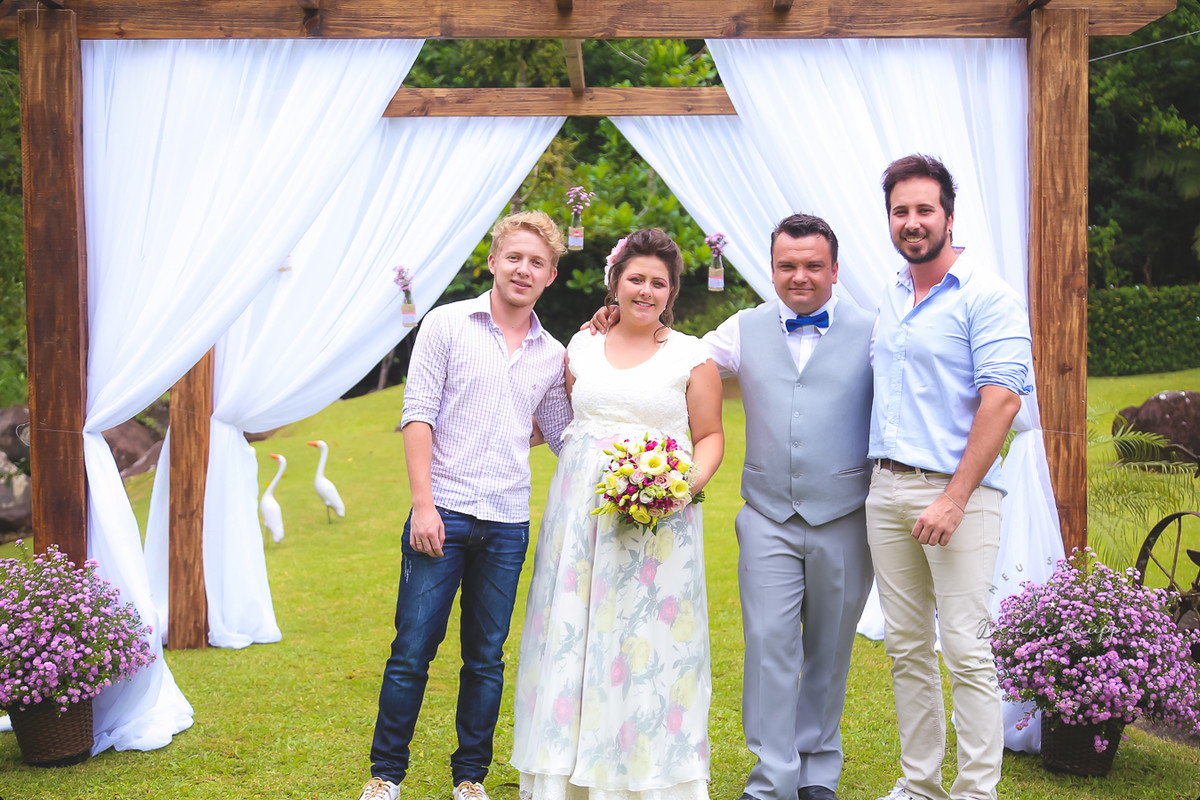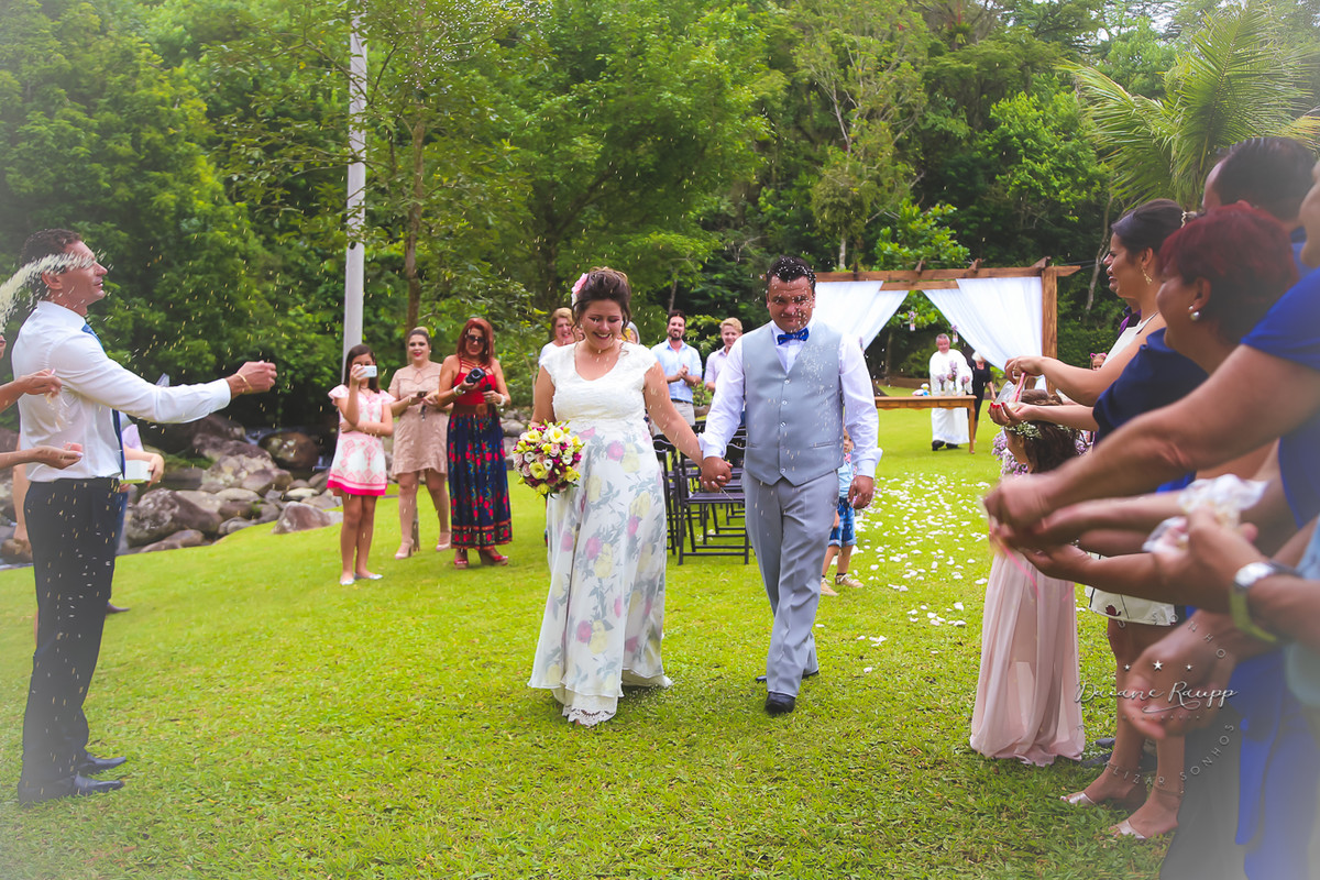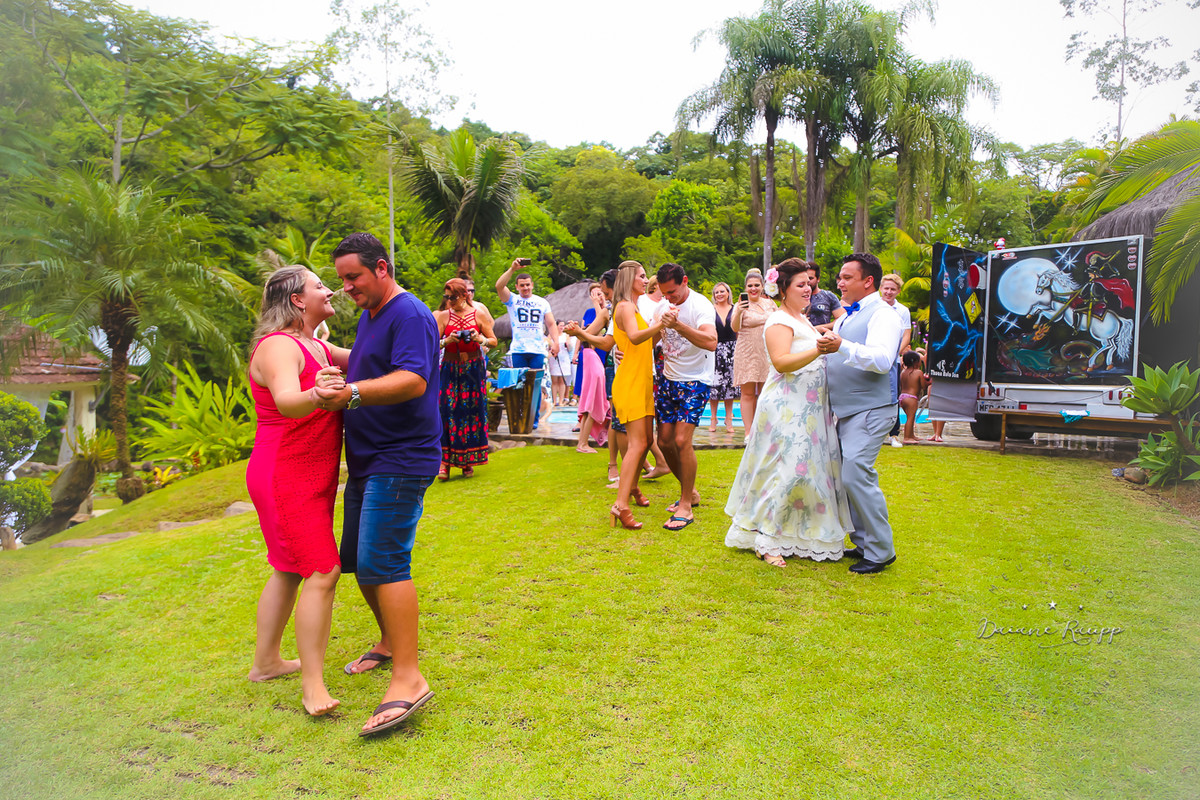 Feito durante o dia, os convidados puderam se divertir na cachoeira e na piscina.